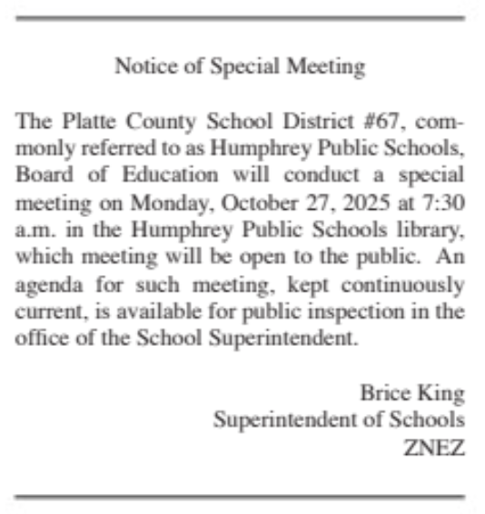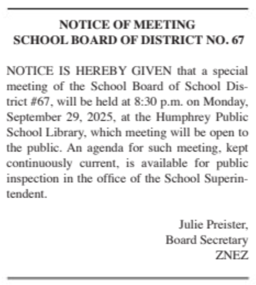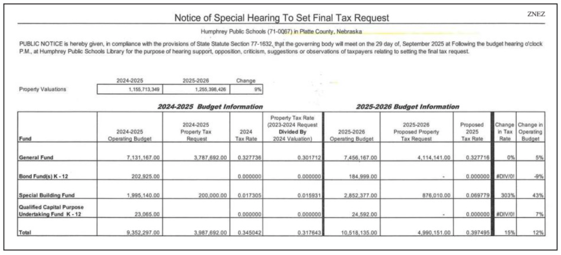 Notice of Budget Hearing and Budget Summary Notice of Special Hearing to Set Final Tax Request